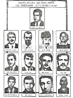 Bu resim bir zamanlar "Sıkıyönetim Komutanlıklarınca aranan" teröristlere ait broşürlerden bir tanesine, Dogu Perinçek ve arkadaşları tarafından 1971'de kurulan "Türkiye İhtilalci İşçi Köylü Partisi Gizli Örgütünün" lider ve militanlarına ait. (Resmi büyük olarak görmek için buraya tıklayın)